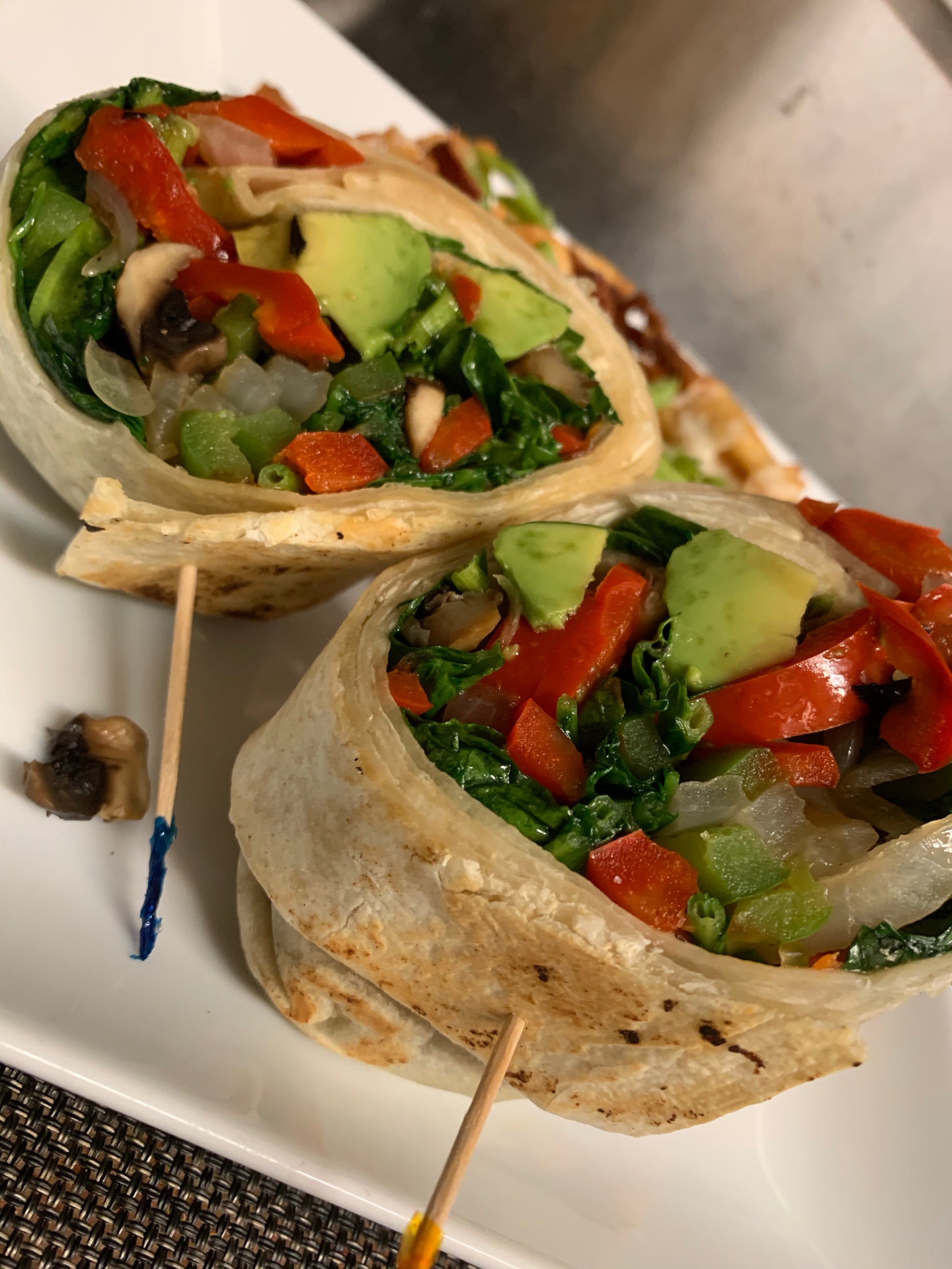 Sauteed peppers, onions, mushrooms, spinach, and avocado.